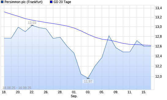 Mit dem Rücksetzer auf 12,60 EUR hat die Persimmon-Aktie am 15.09.2025 die 20-Tage-Linie nach unten gekreuzt.