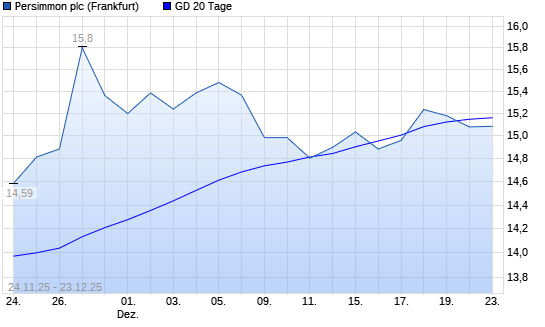 Mit dem Rücksetzer auf 15,08 EUR hat die Persimmon-Aktie am 22.12.2025 die 20-Tage-Linie nach unten gekreuzt.