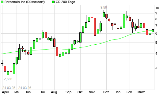 Mit dem Anstieg auf 6,52 EUR hat die Personalis-Aktie am 23.03.2026 die 200-Tage-Linie nach oben gekreuzt.