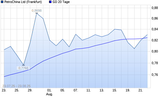 Mit dem Anstieg auf 0,83 EUR hat die PetroChina-Aktie am 22.08.2025 die 20-Tage-Linie nach oben gekreuzt.