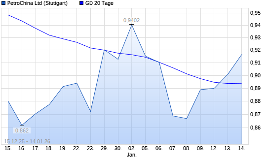 Mit dem Anstieg auf 0,91 EUR hat die PetroChina-Aktie am 13.01.2026 die 20-Tage-Linie nach oben gekreuzt.
