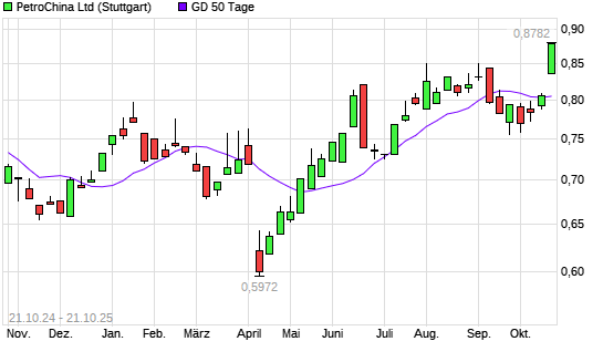 Mit dem Anstieg auf 0,83 EUR hat die PetroChina-Aktie am 20.10.2025 die 50-Tage-Linie nach oben gekreuzt.