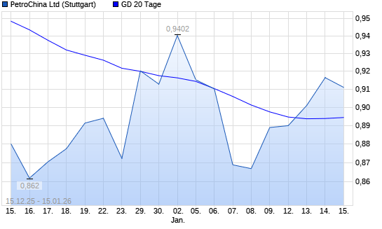 Mit dem Rücksetzer auf 0,90 EUR hat die PetroChina-Aktie am 14.01.2026 die 20-Tage-Linie nach unten gekreuzt.