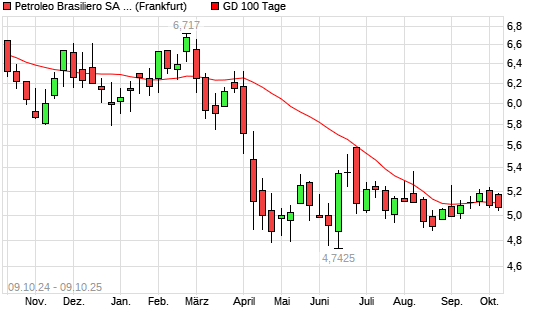 Mit dem Anstieg auf 5,11 EUR hat die Petroleo Brasileiro-Aktie am 08.10.2025 die 100-Tage-Linie nach oben gekreuzt.