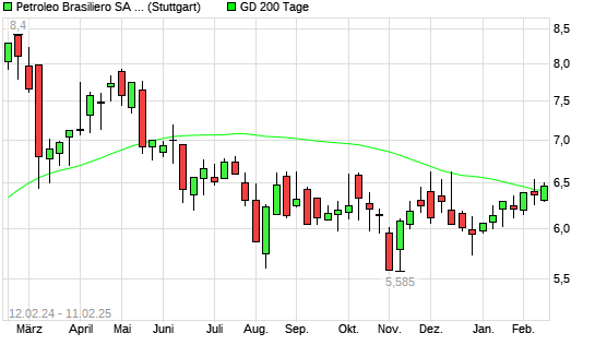 Mit dem Anstieg auf 6,44 EUR hat die Petroleo Brasileiro-Aktie am 10.02.2025 die 200-Tage-Linie nach oben gekreuzt.