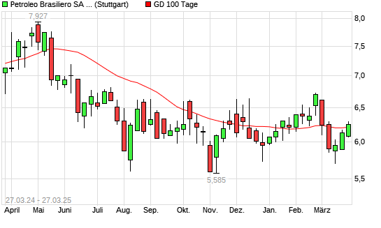 Mit dem Rücksetzer auf 6,21 EUR hat die Petroleo Brasileiro-Aktie am 26.03.2025 die 100-Tage-Linie nach unten gekreuzt.