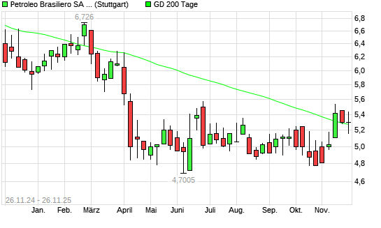Mit dem Rücksetzer auf 5,28 EUR hat die Petroleo Brasileiro-Aktie am 25.11.2025 die 200-Tage-Linie nach unten gekreuzt.