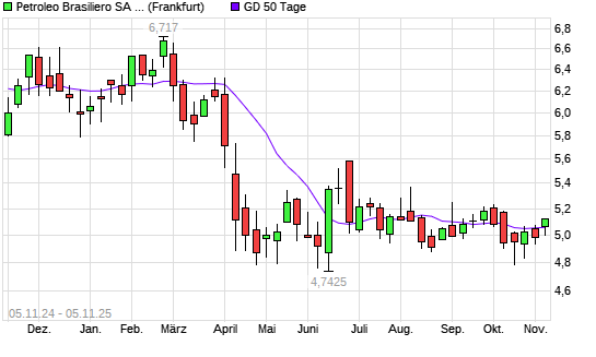 Mit dem Rücksetzer auf 5,05 EUR hat die Petroleo Brasileiro-Aktie am 04.11.2025 die 50-Tage-Linie nach unten gekreuzt.