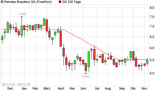 Mit dem Anstieg auf 5,51 EUR hat die Petroleo Brasiliero-Aktie am 07.11.2025 die 100-Tage-Linie nach oben gekreuzt.