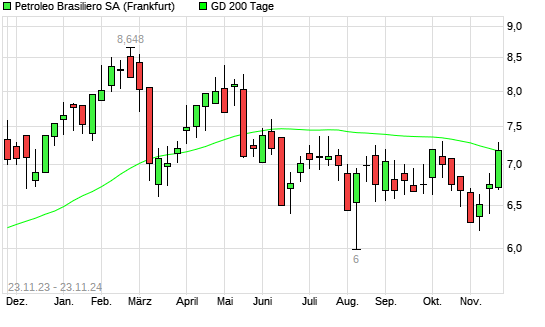 Mit dem Anstieg auf 7,18 EUR hat die Petroleo Brasiliero-Aktie am 22.11.2024 die 200-Tage-Linie nach oben gekreuzt.