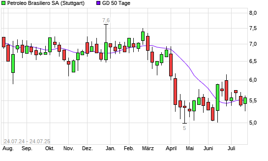 Mit dem Anstieg auf 5,60 EUR hat die Petroleo Brasiliero-Aktie am 23.07.2025 die 50-Tage-Linie nach oben gekreuzt.