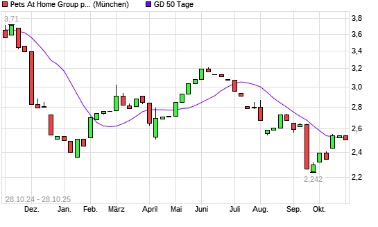 Mit dem Rücksetzer auf 2,48 EUR hat die Pets at Home Group-Aktie am 27.10.2025 die 50-Tage-Linie nach unten gekreuzt.Die Pets at Home Group-Aktie befindet sich seit dem 30.07.2025 im langfristigen ...weiterlesen