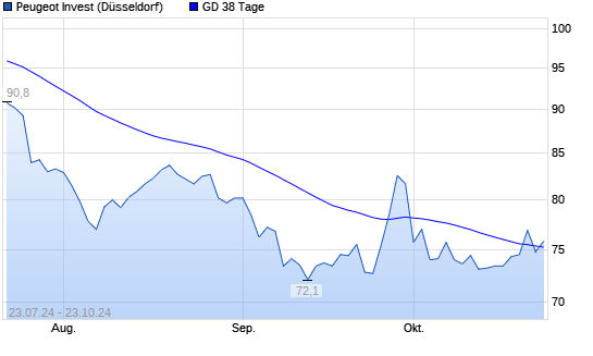 Mit dem Anstieg auf 75,90 EUR hat die Peugeot Invest-Aktie am 22.10.2024 die 38-Tage-Linie nach oben gekreuzt.