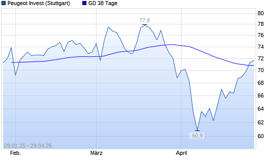 Mit dem Anstieg auf 70,70 EUR hat die Peugeot Invest-Aktie am 28.04.2025 die 38-Tage-Linie nach oben gekreuzt.