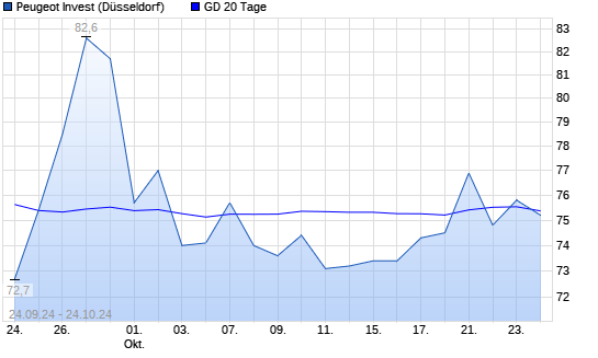 Mit dem Rücksetzer auf 75,30 EUR hat die Peugeot Invest-Aktie am 23.10.2024 die 20-Tage-Linie nach unten gekreuzt.