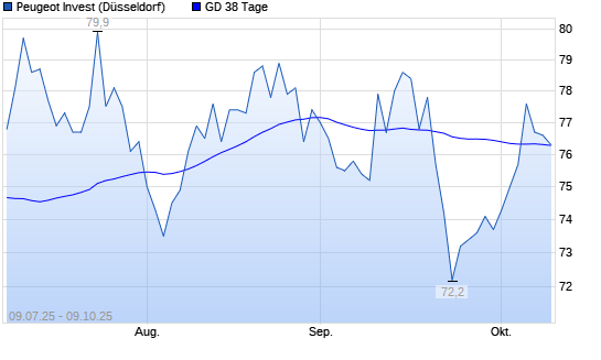 Mit dem Rücksetzer auf 75,80 EUR hat die Peugeot Invest-Aktie am 08.10.2025 die 38-Tage-Linie nach unten gekreuzt.