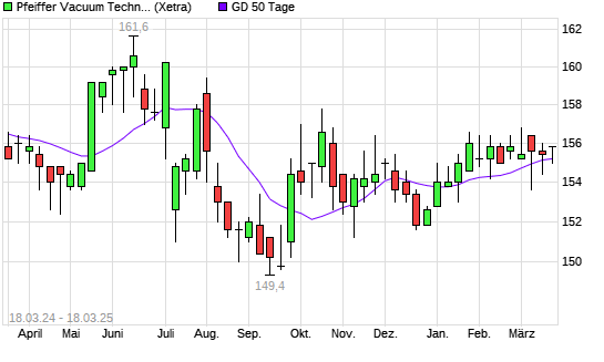 Mit dem Anstieg auf 155,80 EUR hat die Pfeiffer Vacuum-Aktie am 17.03.2025 die 50-Tage-Linie nach oben gekreuzt.