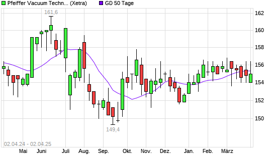 Mit dem Anstieg auf 155,40 EUR hat die Pfeiffer Vacuum-Aktie am 01.04.2025 die 50-Tage-Linie nach oben gekreuzt.