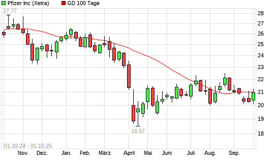 Mit dem Anstieg auf 21,68 EUR hat die Pfizer-Aktie am 30.09.2025 die 100-Tage-Linie nach oben gekreuzt.