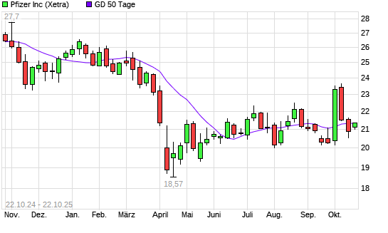 Mit dem Anstieg auf 21,39 EUR hat die Pfizer-Aktie am 21.10.2025 die 50-Tage-Linie nach oben gekreuzt.