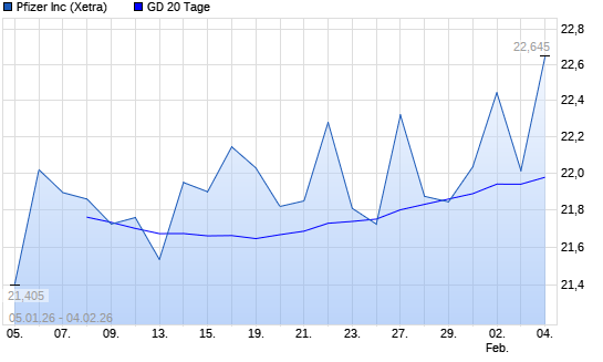 Mit dem Rücksetzer auf 21,80 EUR hat die Pfizer-Aktie am 03.02.2026 die 20-Tage-Linie nach unten gekreuzt.