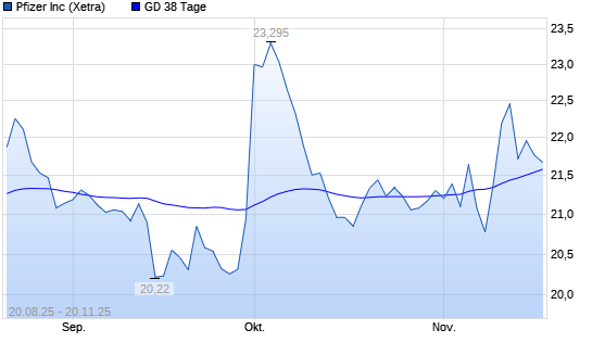 Mit dem Rücksetzer auf 21,57 EUR hat die Pfizer-Aktie am 19.11.2025 die 38-Tage-Linie nach unten gekreuzt.