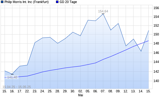 Mit dem Rücksetzer auf 146,34 EUR hat die Philip Morris International-Aktie am 14.05.2025 die 20-Tage-Linie nach unten gekreuzt.