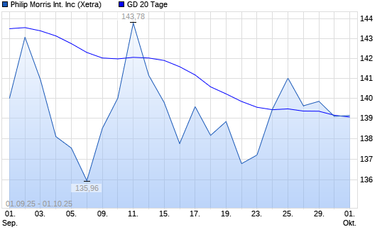 Mit dem Rücksetzer auf 137,98 EUR hat die Philip Morris International-Aktie am 30.09.2025 die 20-Tage-Linie nach unten gekreuzt.