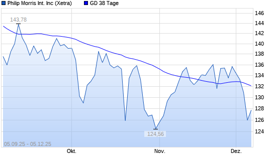 Mit dem Rücksetzer auf 126,12 EUR hat die Philip Morris International-Aktie am 04.12.2025 die 38-Tage-Linie nach unten gekreuzt.