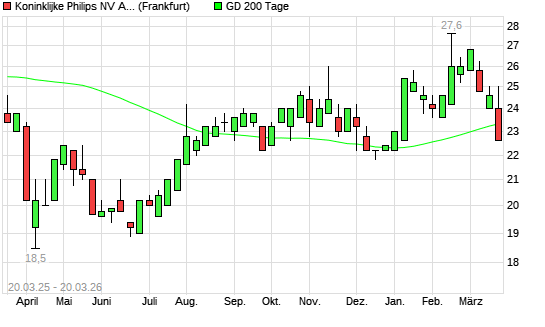 Mit dem Rücksetzer auf 23,00 EUR hat die Philips Electronics ADR-Aktie am 19.03.2026 die 200-Tage-Linie nach unten gekreuzt.