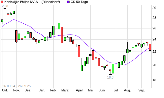 Mit dem Rücksetzer auf 22,80 EUR hat die Philips Electronics ADR-Aktie am 25.09.2025 die 50-Tage-Linie nach unten gekreuzt.