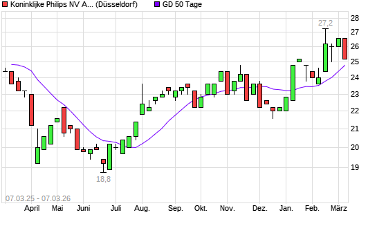 Mit dem Rücksetzer auf 24,80 EUR hat die Philips Electronics ADR-Aktie am 06.03.2026 die 50-Tage-Linie nach unten gekreuzt.Die Philips Electronics ADR-Aktie befindet sich seit ...weiterlesen