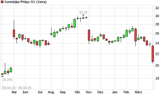 Mit dem Rücksetzer auf 20,73 EUR hat die Philips Electronics-Aktie (ISIN NL0000009538) am 04.04.2025 ein neues 6-Monats-Tief erreicht und damit den Kurs vom 03.04.2025 eingestellt.