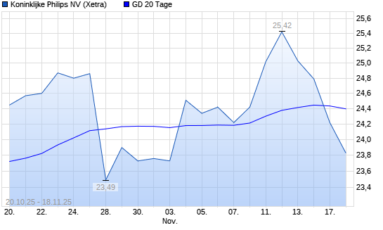 Mit dem Rücksetzer auf 24,34 EUR hat die Philips Electronics-Aktie am 17.11.2025 die 20-Tage-Linie nach unten gekreuzt.