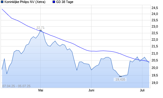 Mit dem Rücksetzer auf 20,34 EUR hat die Philips Electronics-Aktie am 04.07.2025 die 38-Tage-Linie nach unten gekreuzt.