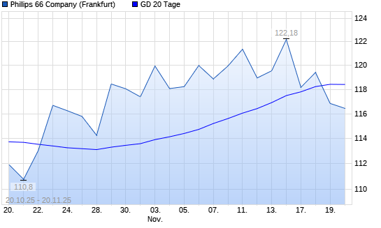 Mit dem Rücksetzer auf 116,84 EUR hat die Phillips 66-Aktie am 19.11.2025 die 20-Tage-Linie nach unten gekreuzt.
