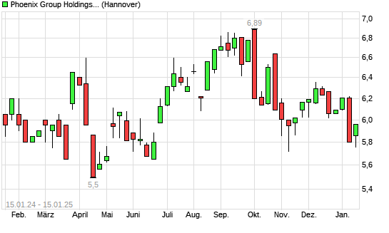 Mit dem Rücksetzer auf 5,77 EUR hat die Phoenix Group-Aktie (ISIN GB00BGXQNP29) am 14.01.2025 ein neues 6-Monats-Tief erreicht und damit den Kurs vom 13.11.2024 eingestellt.