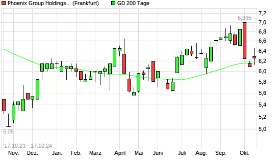 Mit dem Anstieg auf 6,45 EUR hat die Phoenix Group-Aktie am 16.10.2024 die 200-Tage-Linie nach oben gekreuzt.