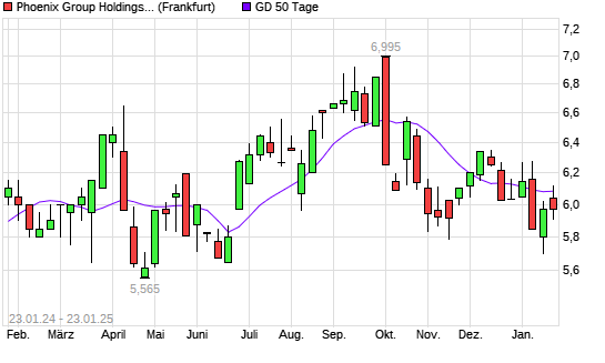 Mit dem Anstieg auf 6,12 EUR hat die Phoenix Group-Aktie am 22.01.2025 die 50-Tage-Linie nach oben gekreuzt.