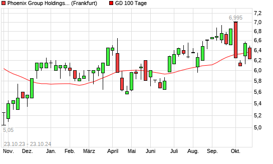 Mit dem Rücksetzer auf 6,35 EUR hat die Phoenix Group-Aktie am 22.10.2024 die 100-Tage-Linie nach unten gekreuzt.