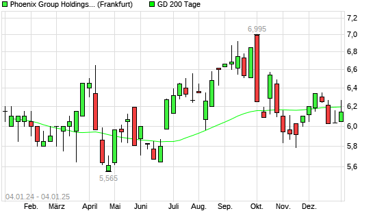 Mit dem Rücksetzer auf 6,15 EUR hat die Phoenix Group-Aktie am 03.01.2025 die 200-Tage-Linie nach unten gekreuzt.