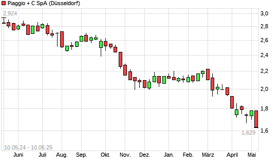 Mit dem Rücksetzer auf 1,62 EUR hat die Piaggio-Aktie (ISIN IT0003073266) am 09.05.2025 ein neues 5-Jahres-Tief erreicht und damit den Kurs vom 22.04.2025 eingestellt.