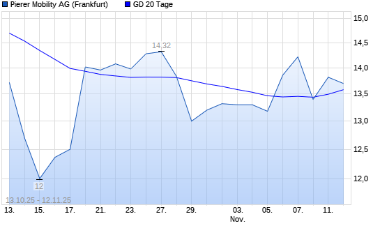 Mit dem Anstieg auf 13,82 EUR hat die Pierer Mobility-Aktie am 11.11.2025 die 20-Tage-Linie nach oben gekreuzt.