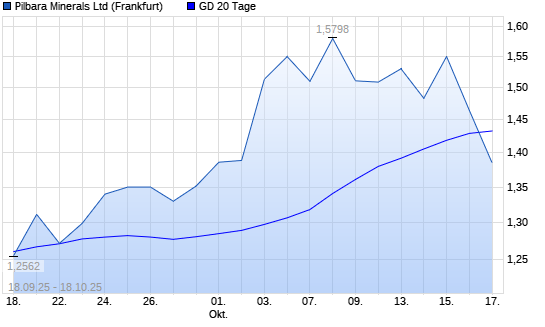 Mit dem Rücksetzer auf 1,39 EUR hat die Pilbara Minerals-Aktie am 17.10.2025 die 20-Tage-Linie nach unten gekreuzt.