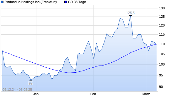 Mit dem Rücksetzer auf 109,50 EUR hat die Pinduoduo-Aktie am 07.03.2025 die 38-Tage-Linie nach unten gekreuzt.