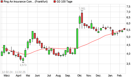 Mit dem Anstieg auf 5,63 EUR hat die Ping An Insurance China-Aktie am 10.02.2025 die 100-Tage-Linie nach oben gekreuzt.