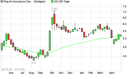 Mit dem Rücksetzer auf 5,20 EUR hat die Ping An Insurance China-Aktie am 29.04.2025 die 200-Tage-Linie nach unten gekreuzt.
