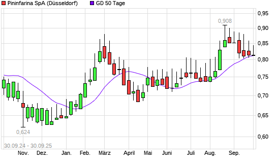 Mit dem Anstieg auf 0,82 EUR hat die Pininfarina-Aktie am 29.09.2025 die 50-Tage-Linie nach oben gekreuzt.