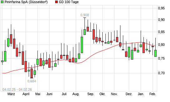 Mit dem Rücksetzer auf 0,80 EUR hat die Pininfarina-Aktie am 03.02.2026 die 100-Tage-Linie nach unten gekreuzt.