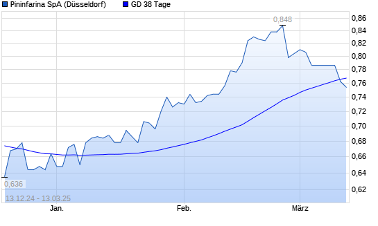 Mit dem Rücksetzer auf 0,77 EUR hat die Pininfarina-Aktie am 12.03.2025 die 38-Tage-Linie nach unten gekreuzt.